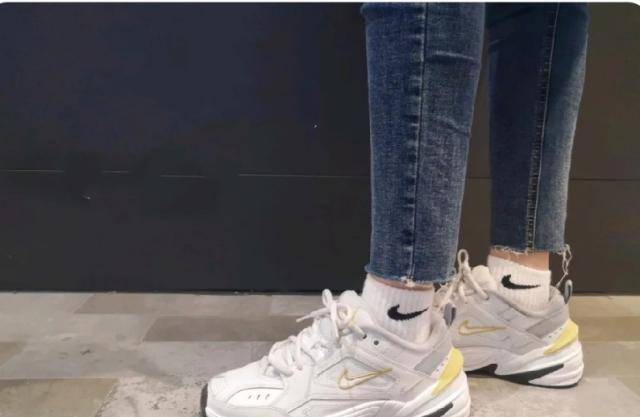 像小脚裤、萝卜裤这种裤子,下面最好卷个边,因为可以将脚踝露出来显腿细。直筒裤、萝卜裤和小白鞋、老爹鞋都属于休闲时尚款,这样搭更协调,而且小脚裤、萝卜裤都属于下面比较细的那种,配上大大的老爹鞋造成对比,会显得腿更细。